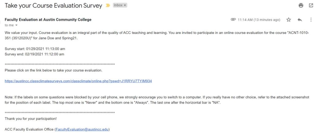 If you have any questions, please contact facultyevaluation@austincc.edu.